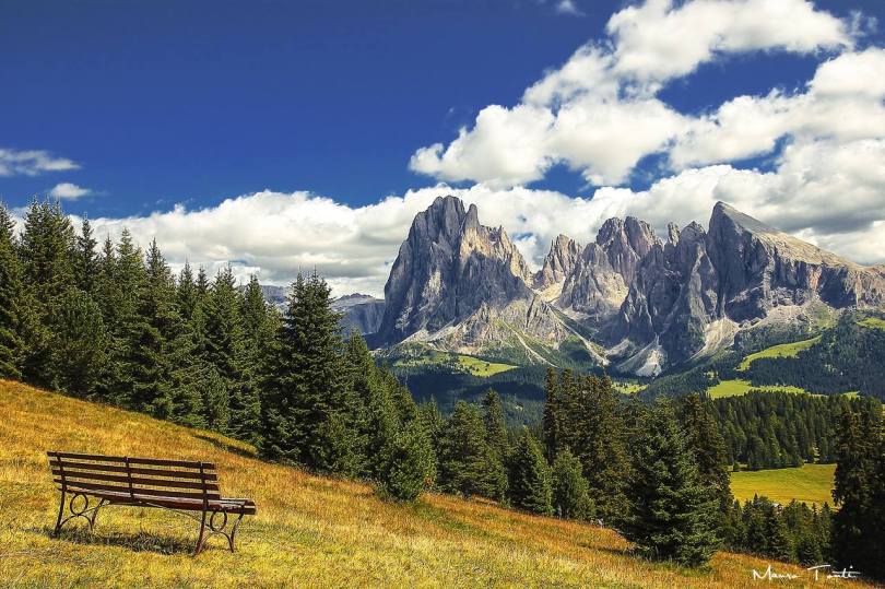 italy dolomites and bench
