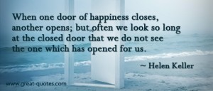 “When one door of happiness closes, another opens; but often we look so long at the closed door that we do not see the one which has been opened for us.”